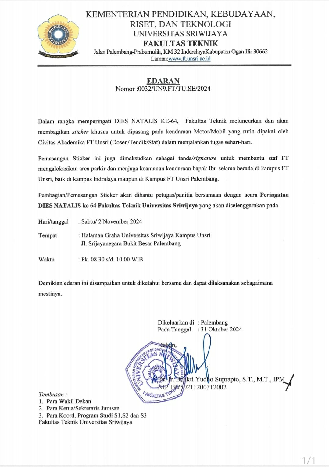 Selamat Dies Natalis Fakultas Teknik Unsri ke-64! ...